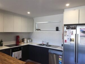 – Well-designed kitchen with European appliances, stone benchtops, large fridge area, double basins and soft closing cupboards