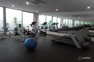 Outdoor communal swimming pool and gym